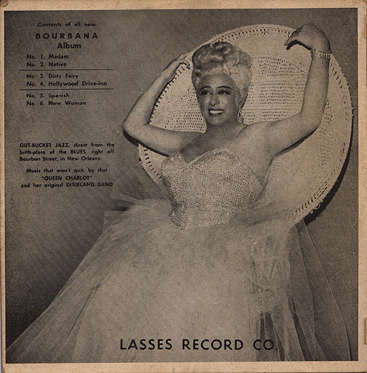 A three disc set and one single 7" 45 rpm were recorded in New Orleans with "Madame Charlot's Original Dixieland Band" (as they are called on the jacket). One song-"Dirty Fairy"-mentions the year 1957, and very clearly this may be taken as an approximate release date. In the testimony of his trial, Bourbon mentions a Miss Carmelita Mass, the producer of his records in New Orleans and from whom he was never adequately compensated. It is almost certain that it was these records to which he was referred.